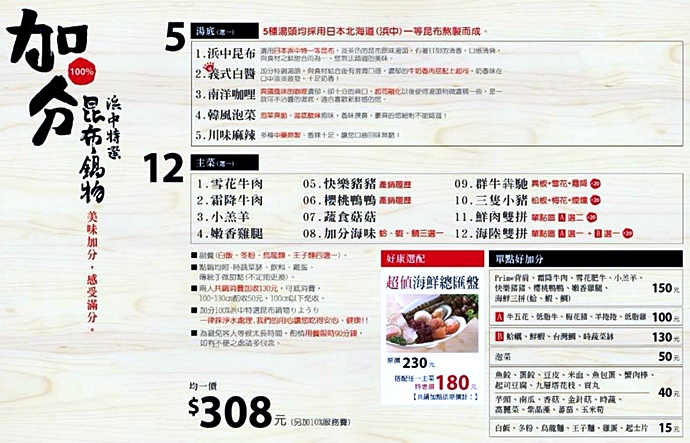 加分昆布鍋物新莊店菜單,